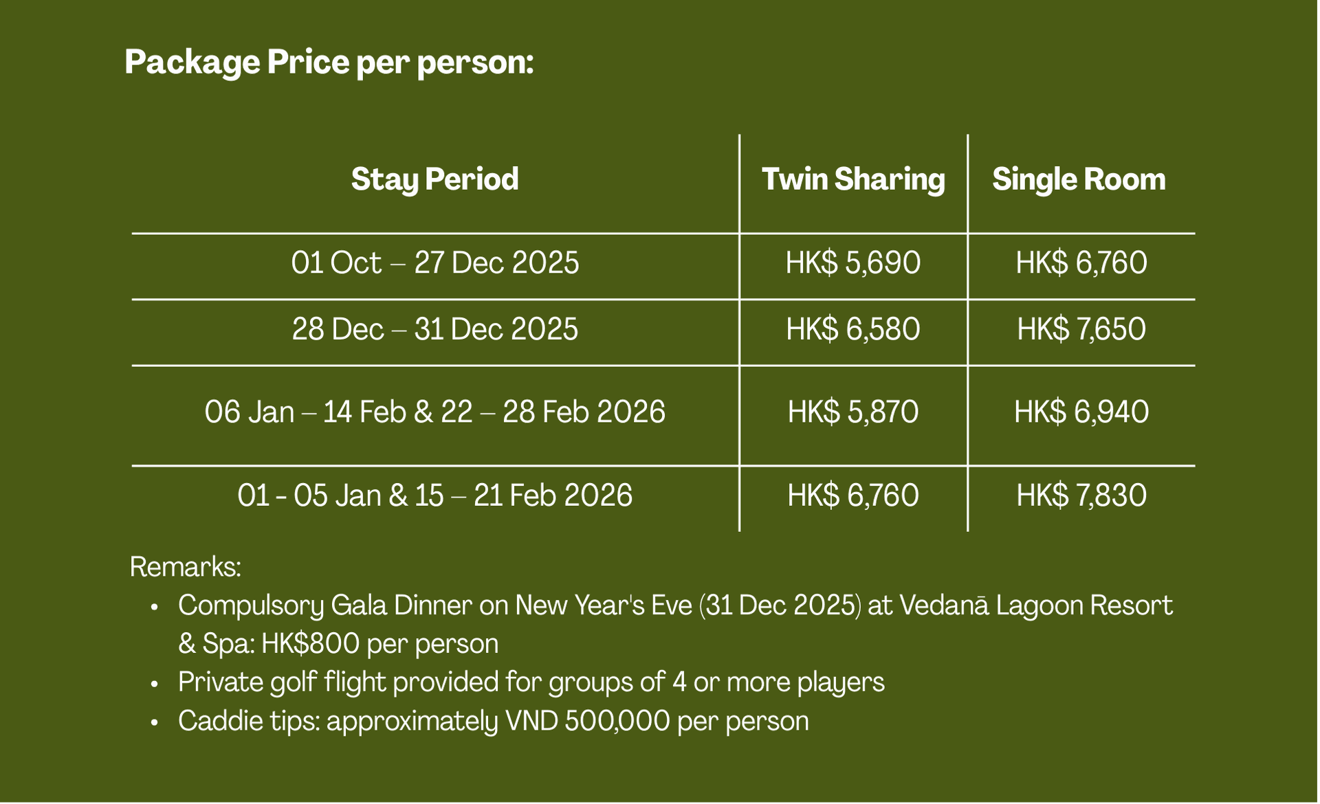 Beyond the fairways, immerse yourself in Da Nang's vibrant culture, indulge in exquisite cuisine, and soak in the stunning coastal scenery. Whether you're chasing birdies or simply unwinding, this getaway promises an unforgettable experience—both on and off the course.
