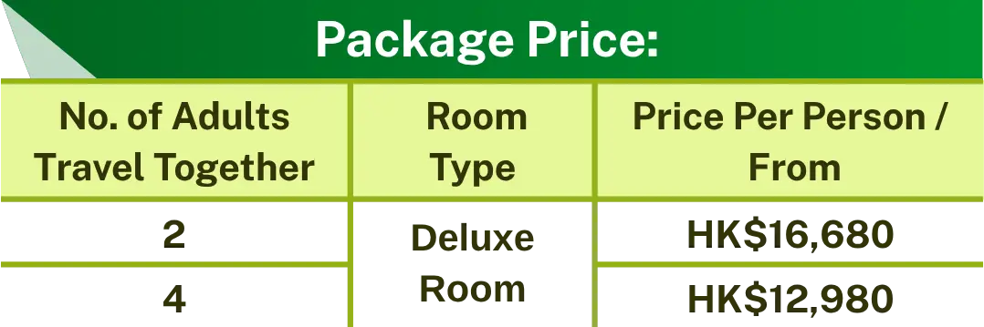 • A non-refundable fee of HK$1,000 per booking plus any applicable price difference applies for each change to existing bookings.